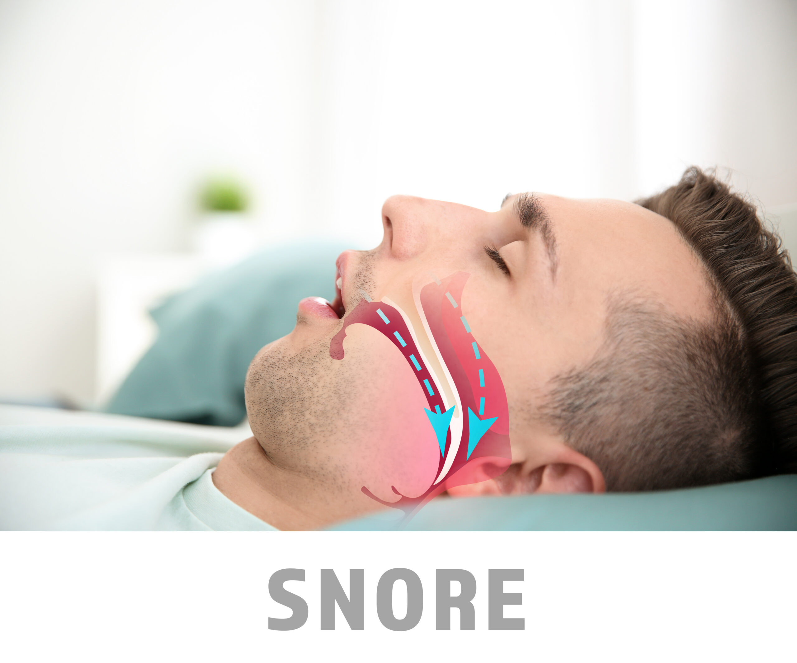 Beim Schnarchen geraten die oberen Atemwege in Schwingung, wenn sie im Schlaf enger werden.